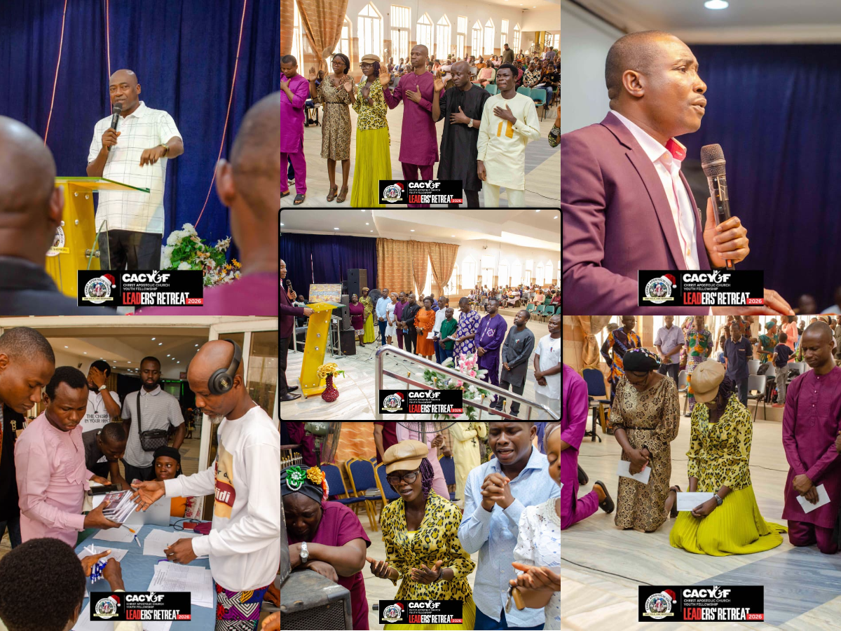 CACYOF Ibadan Centre holds Leadership Retreat 2026, inducts new executivesCACYOF January 21, 2026 Christ Apostolic Church Youth Fellowship (CACYOF), Ibadan Centre, Babalola region, has held its Leaders’ Retreat 2026 at Christ Apostolic Church…